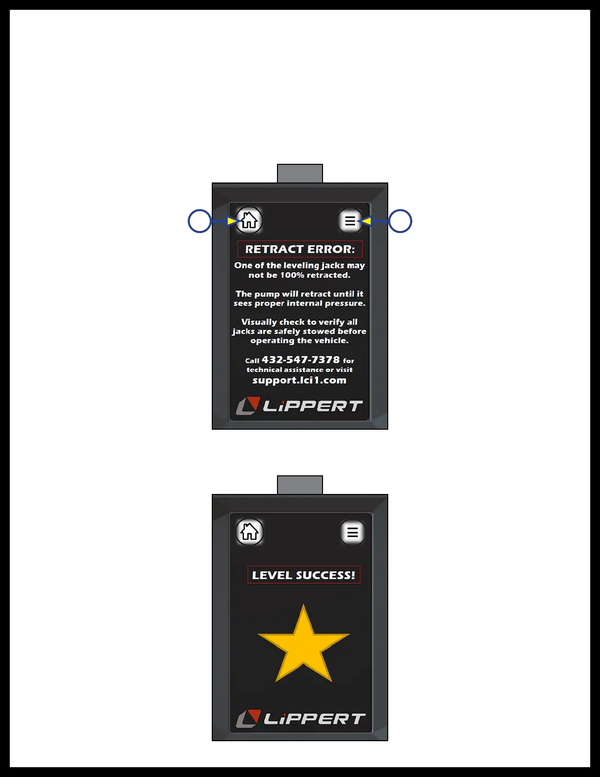 decibels), jacks will stop retracting and this screen to be displayed. Alarm to run until coach ignition