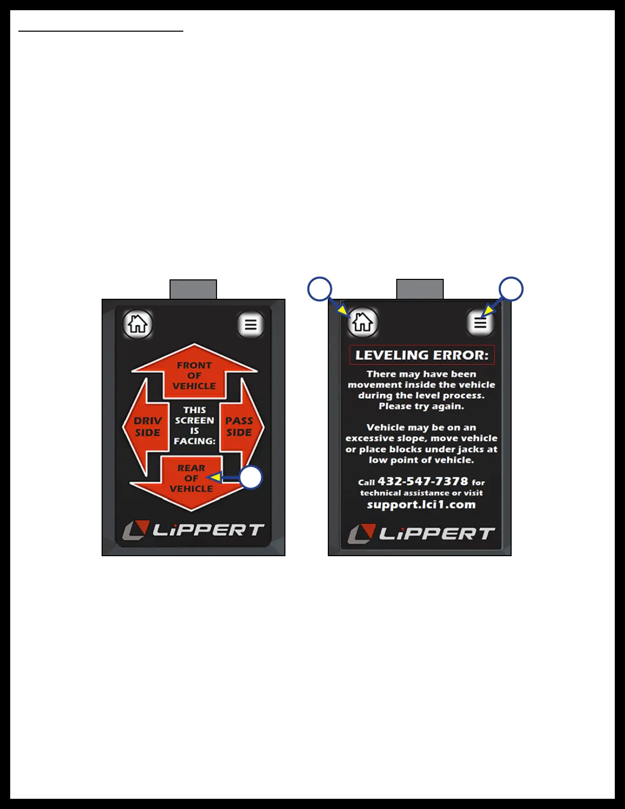 NOTE: Do NOT move inside coach while the system is trying to level. A leveling error code screen