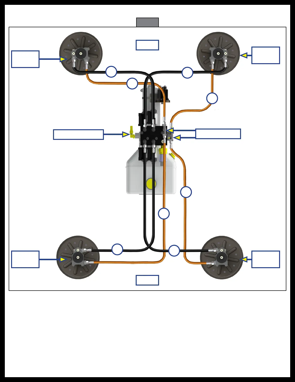 • Driver Side Rear - Black Hose - BLUE Label & Wire