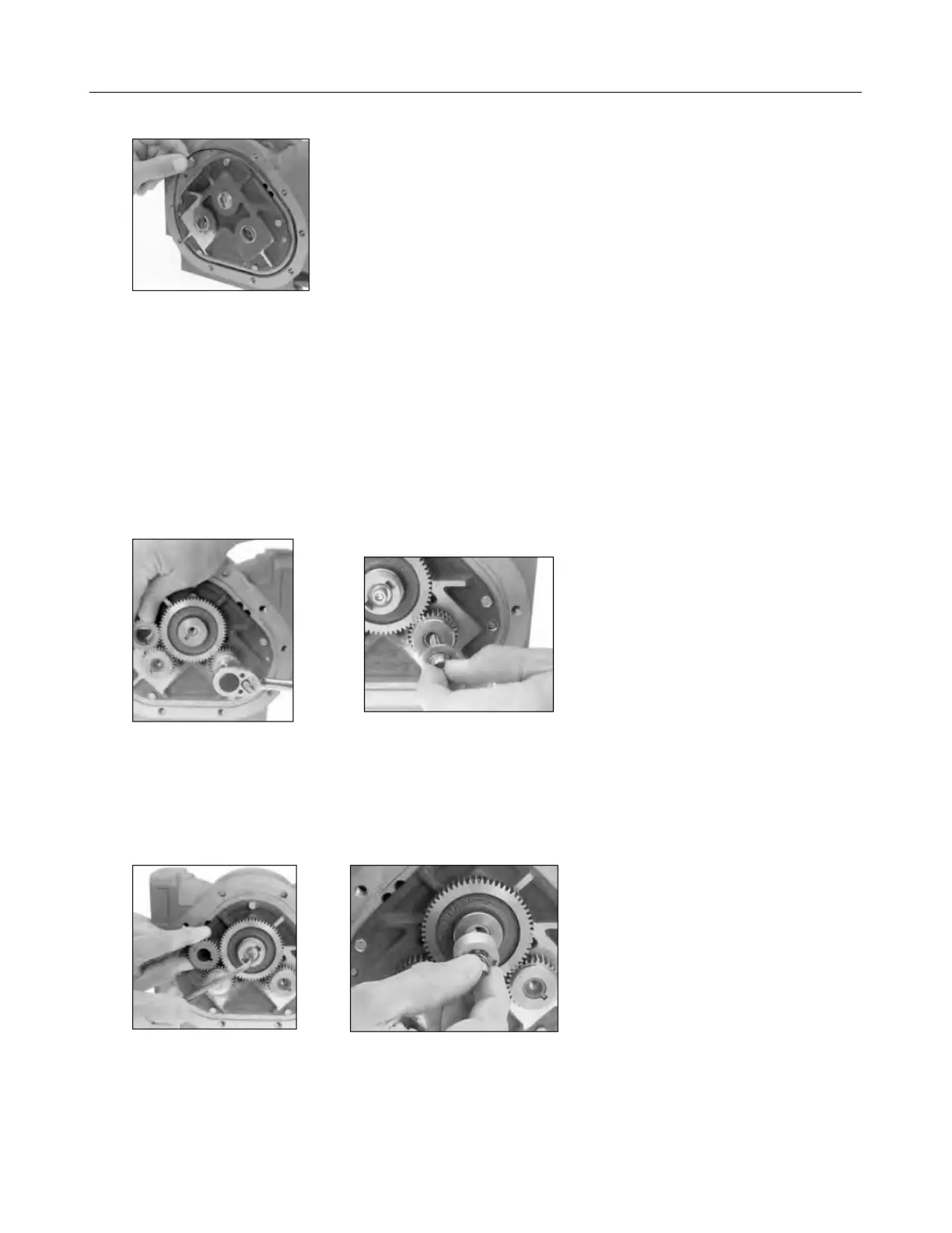 screw and washer. Hold the spare gear between the right displacement rotor gear and