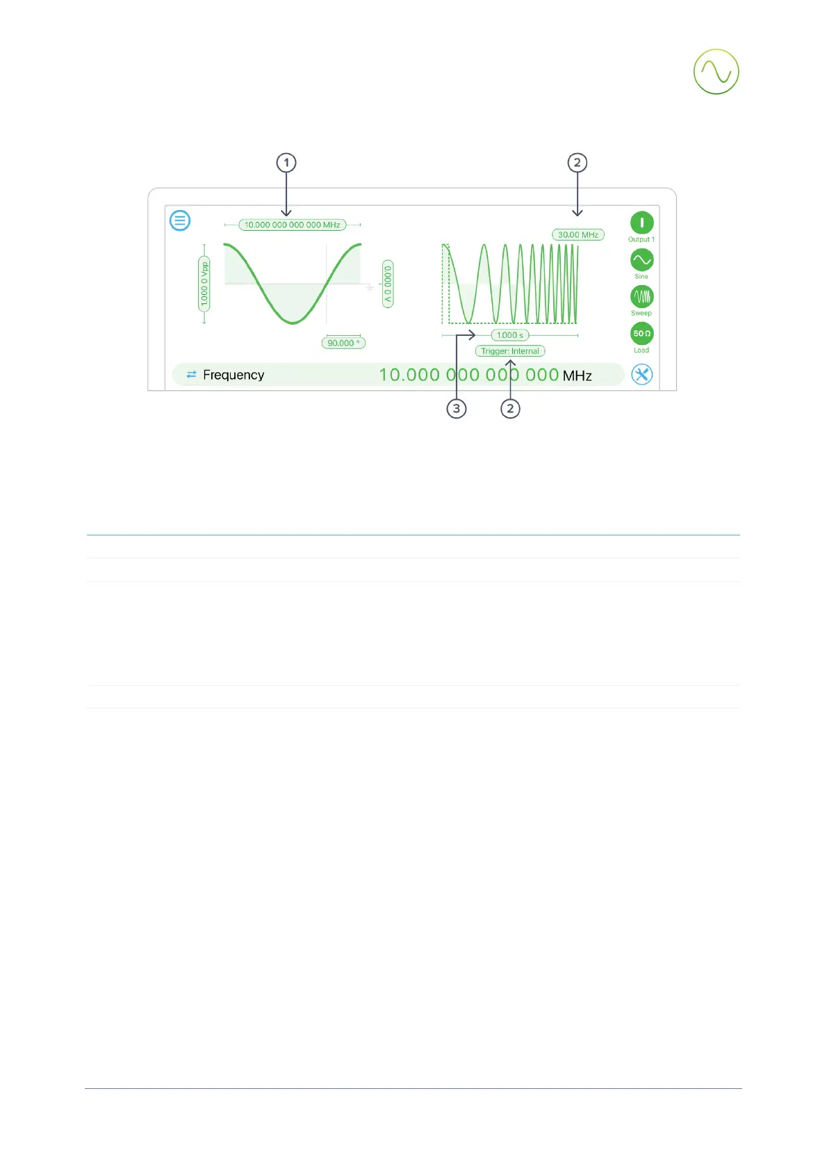 1 Start frequency Waveform frequency at the trigger event (sweep start).