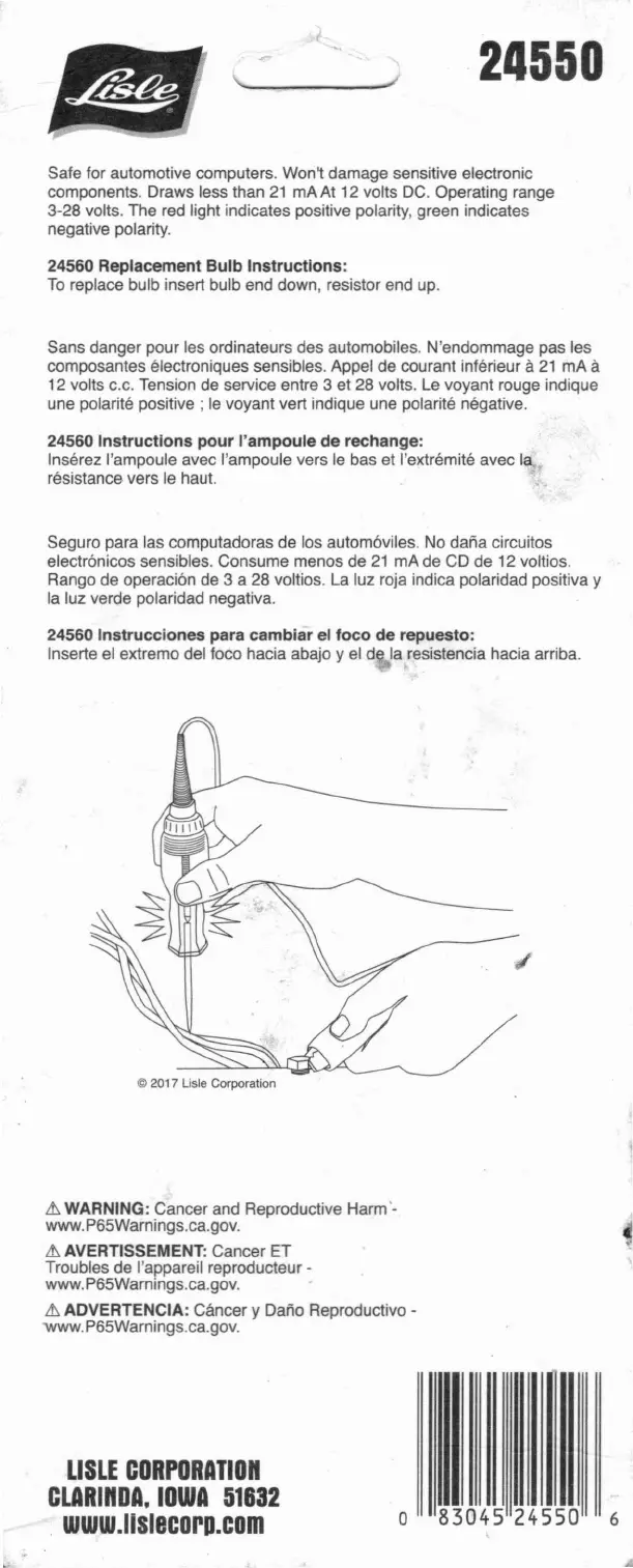 24560 Instructions pour I'ampoule de rechange: