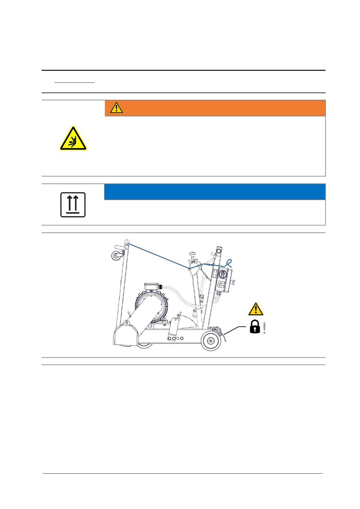 • Fold the tracking pointer against the machine and secure it with a rope.