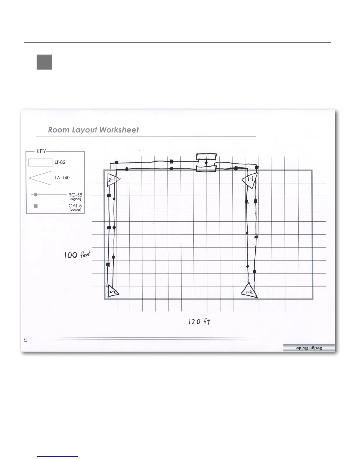 the transmitter(s) and power supplies (if any) to the radiator. We have provided the room layout worksheet for you