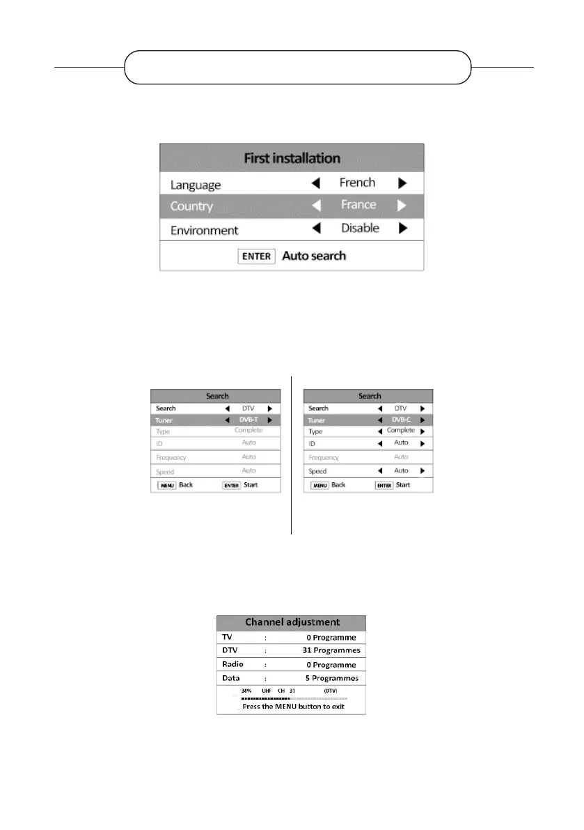 2. Desplácese hasta la línea Enter para seleccionar el tipo de sintonizador a utilizar (antena,