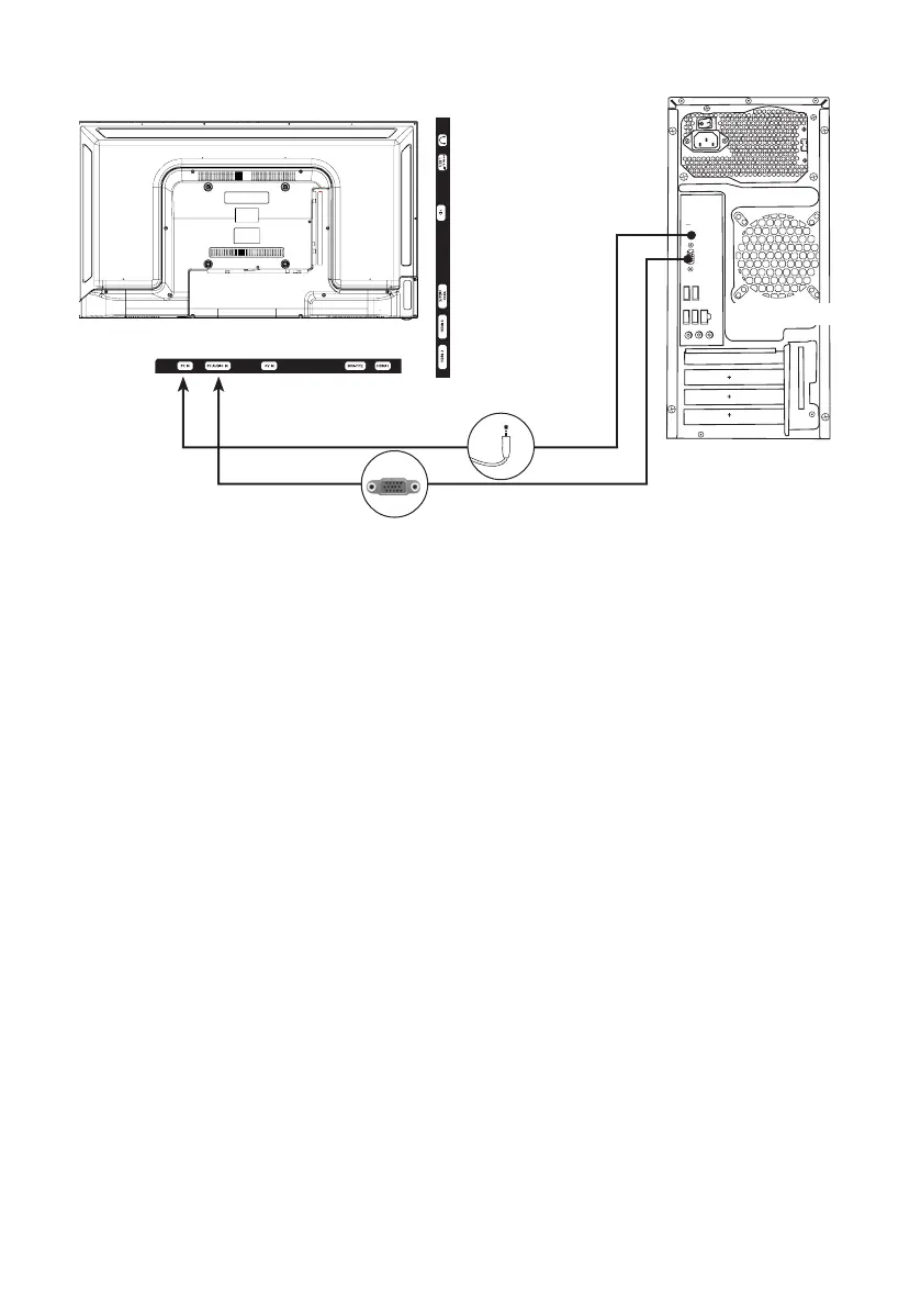 • Schließen Sie ein Ende eines VGA-Kabels an die Buchse PC IN auf der Rückseite Ihres