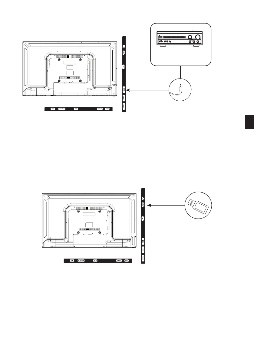 • Het televisietoestel is uitgerust met een USB-aansluiting die bedoeld is om video’s, foto’s of