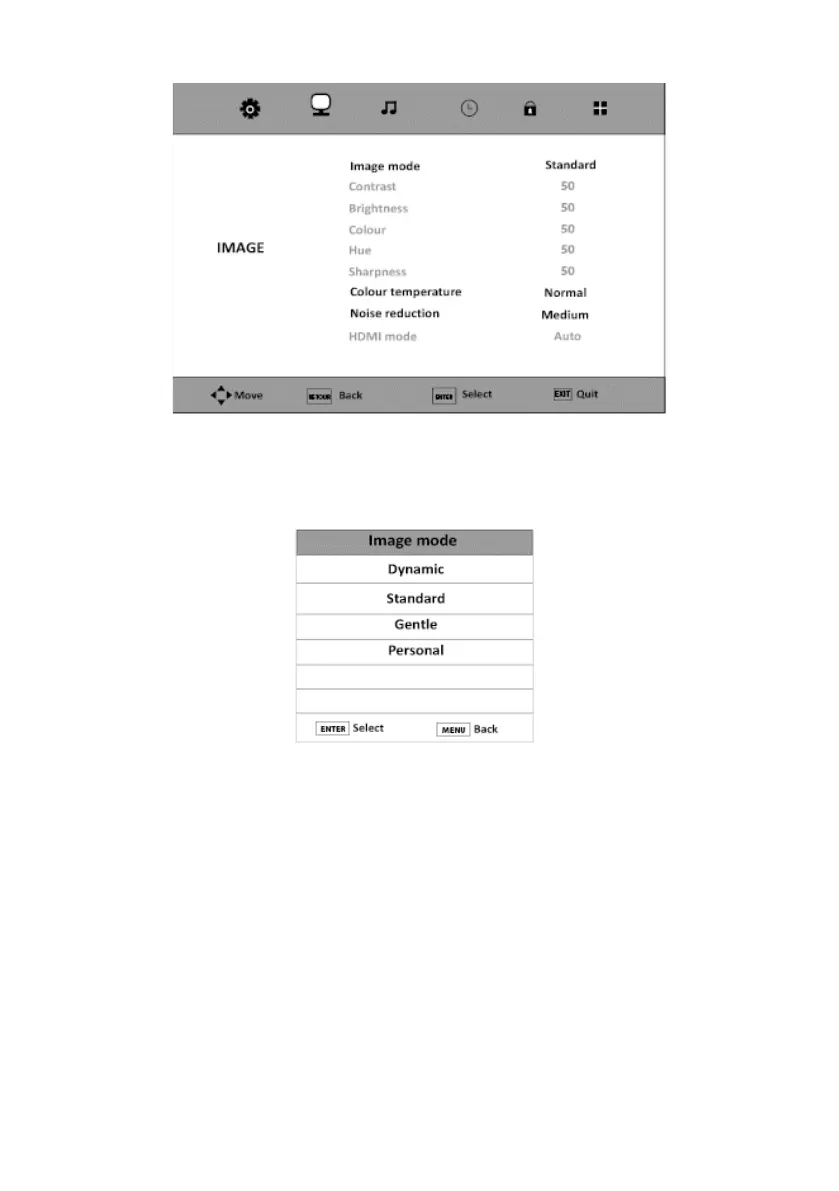 2. Druk op de ENTER toets of om Beeldmodus te selecteren.