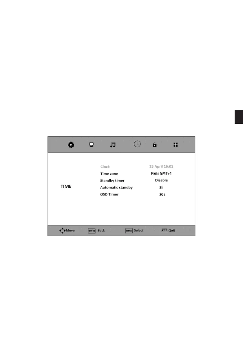 Met deze optie kunt u de tijdzone selecteren met behulp van de toetsen en .