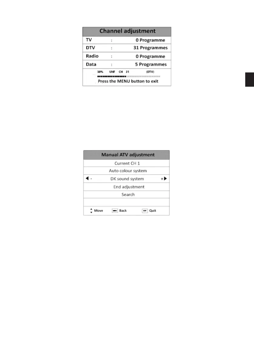 • Search: Press the and buttons to start the manual search.