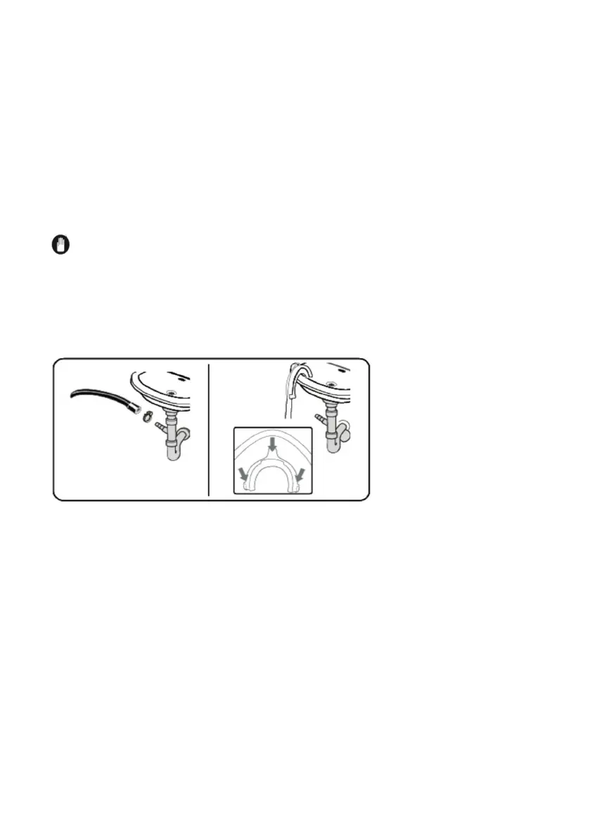 4. Zorg ervoor dat de nieuwe watertoevoerslang niet geklemd, gedraaid,