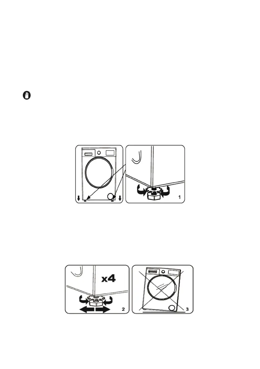 1. Before using the washing machine, remove the 4 transit bolts and rubber washers