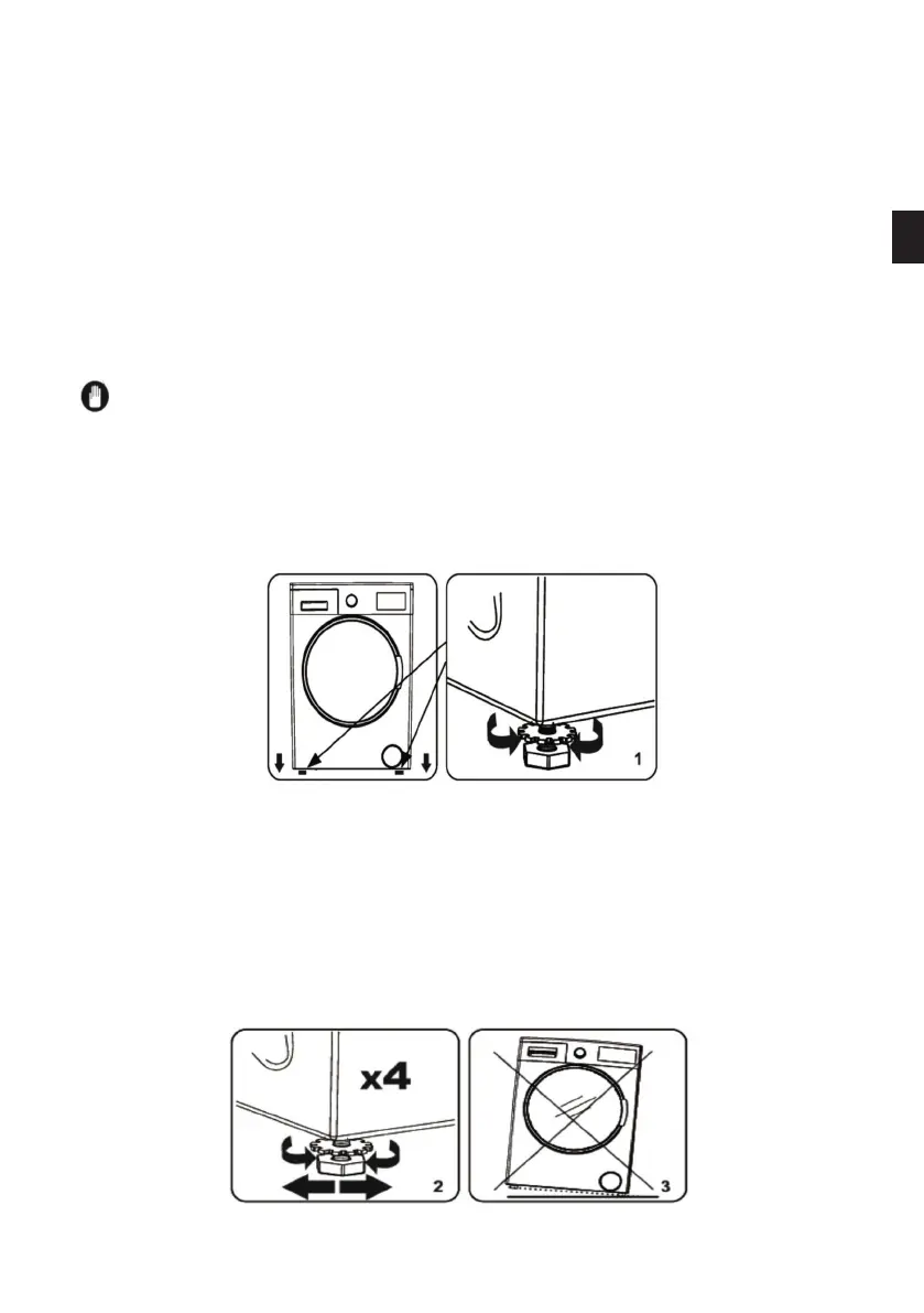 • Le réglage du niveau de la machine s’eectue à l’aide des pieds ajustables.
