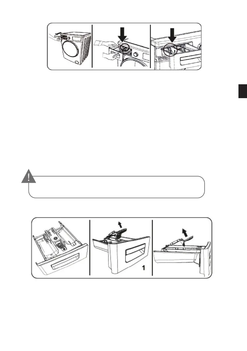 • Con cuidado, presione el cajón para productos detergentes (como se muestra en la