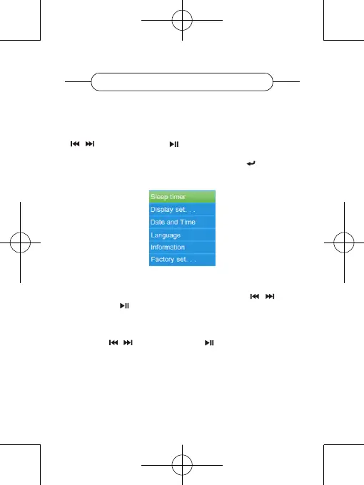 • Desde elmenú Ajustes,seleccione«Sleeptimer» con las teclas / y valide