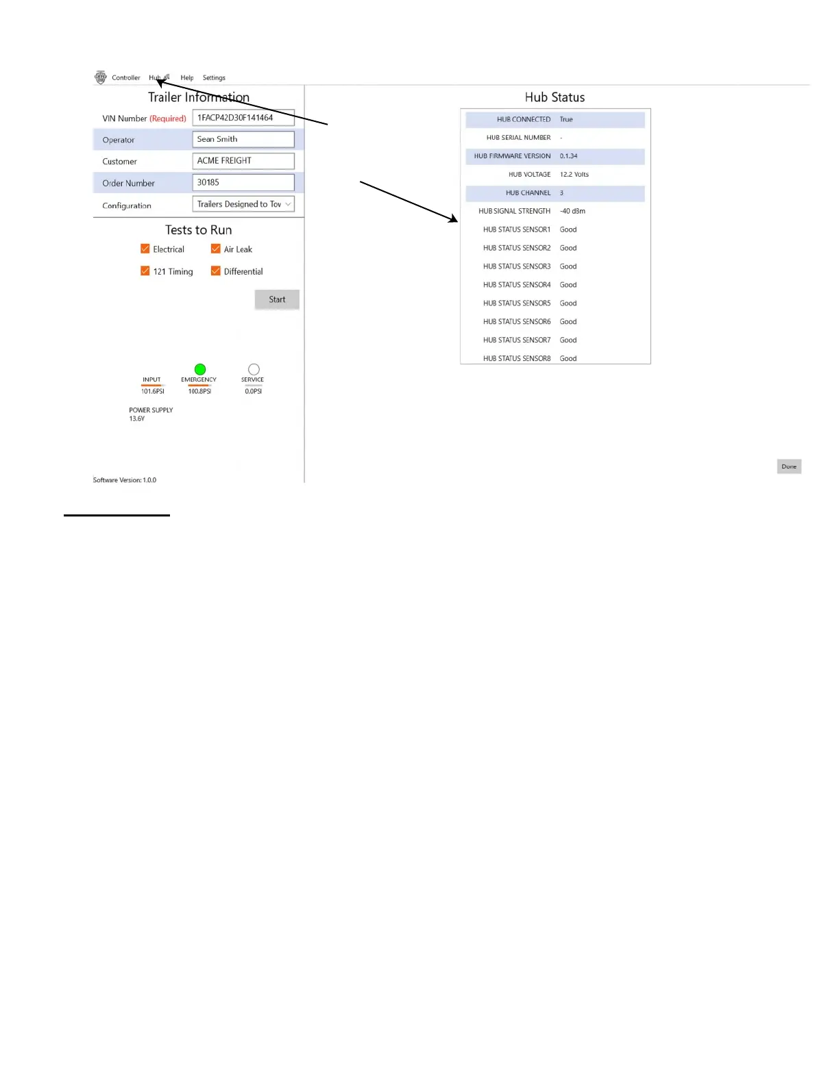 HUB Connected: Indicates if the Hub is communicating with the 1200 Certifier. True or False.