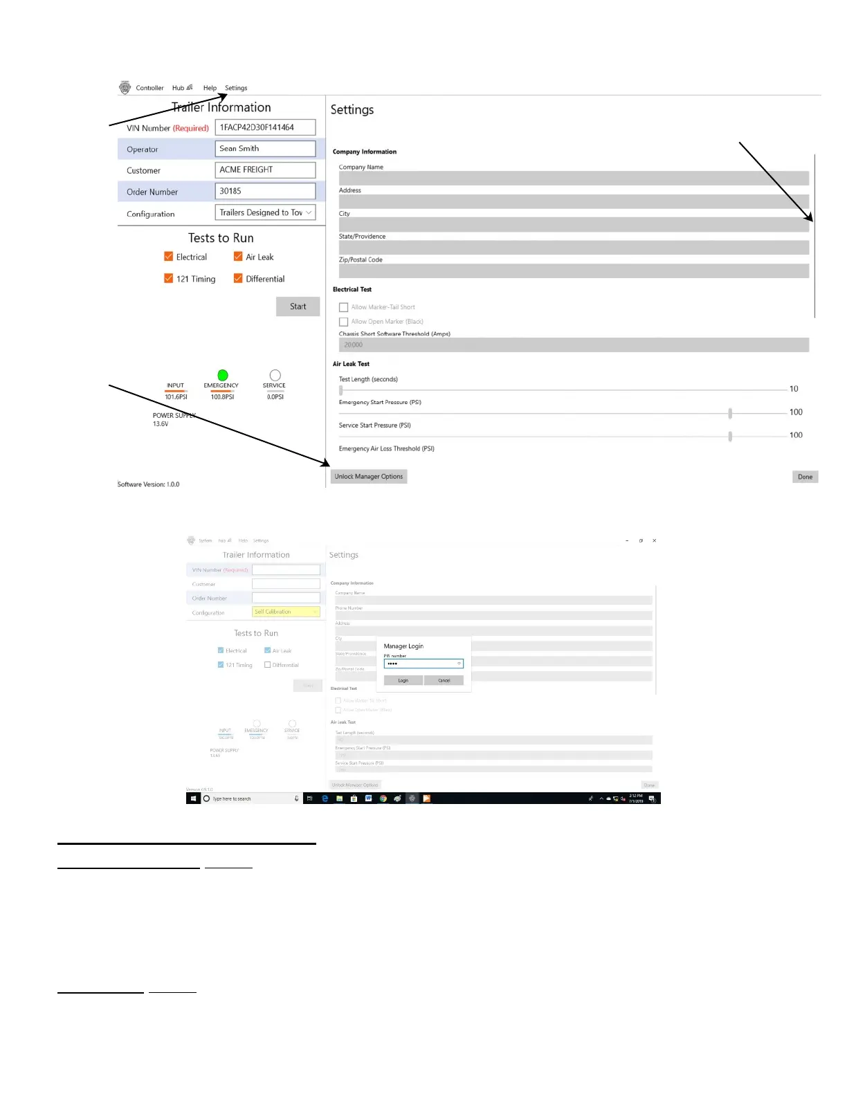 Company Information section: After Logging in using the Manager PIN, all the fields on the ‘Settings’ page may be