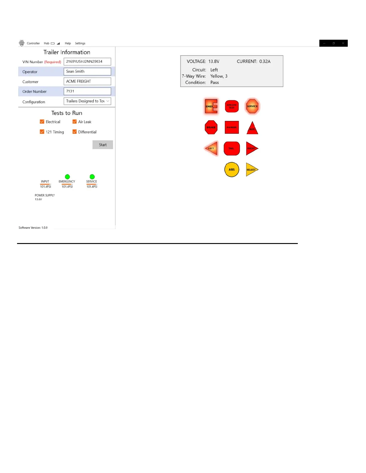 ”Test Status” may be watched on the right side of the GUI that is displayed. In the example above, the Left Taillight