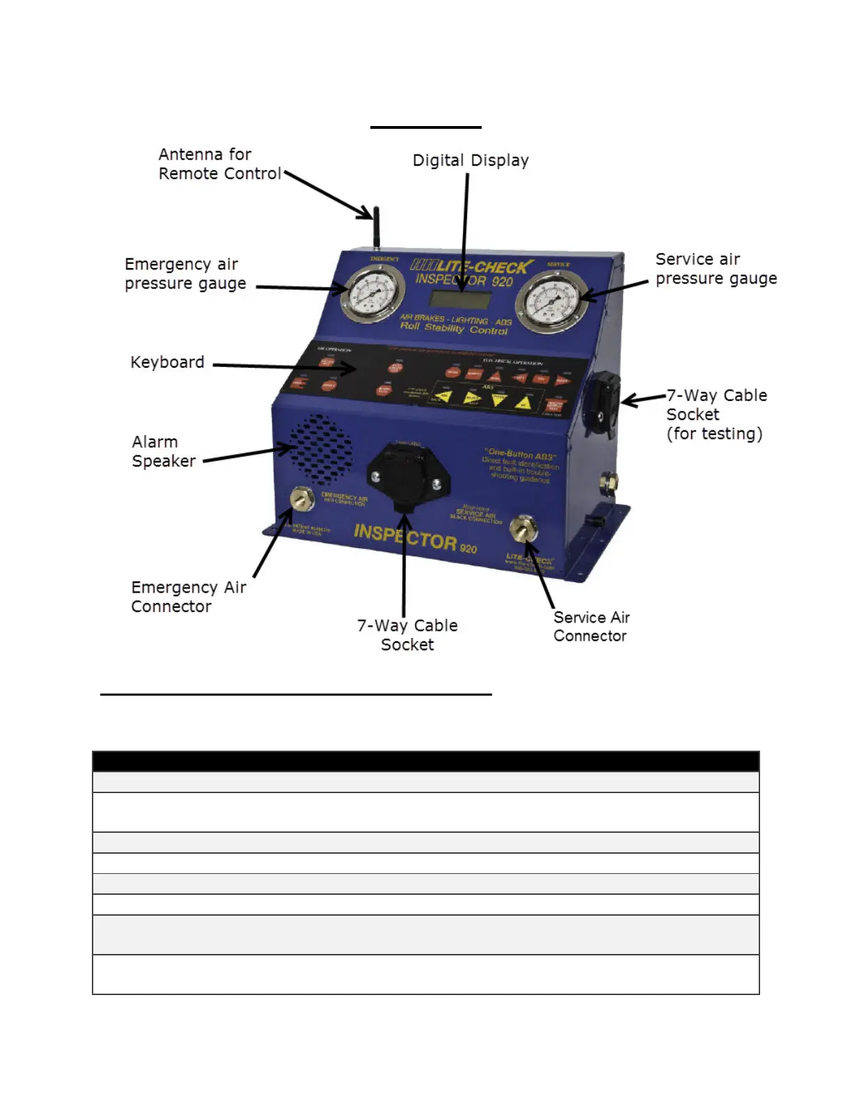 The LITE-CHECK INSPECTOR 920 has the following components.