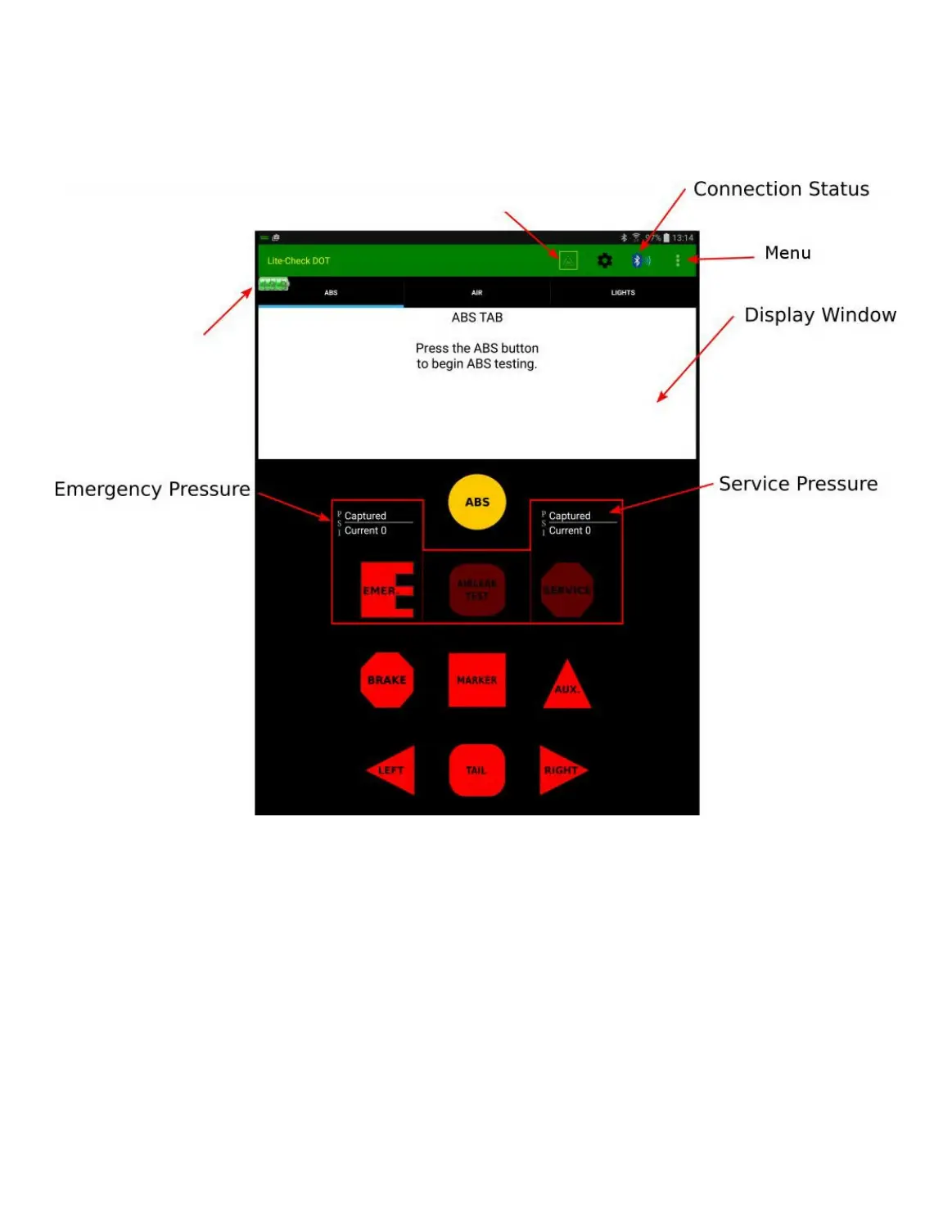 NOTE: Only “Lit” icons (buttons) are available for use. Above is the “ABS” tab; notice that the ABS,