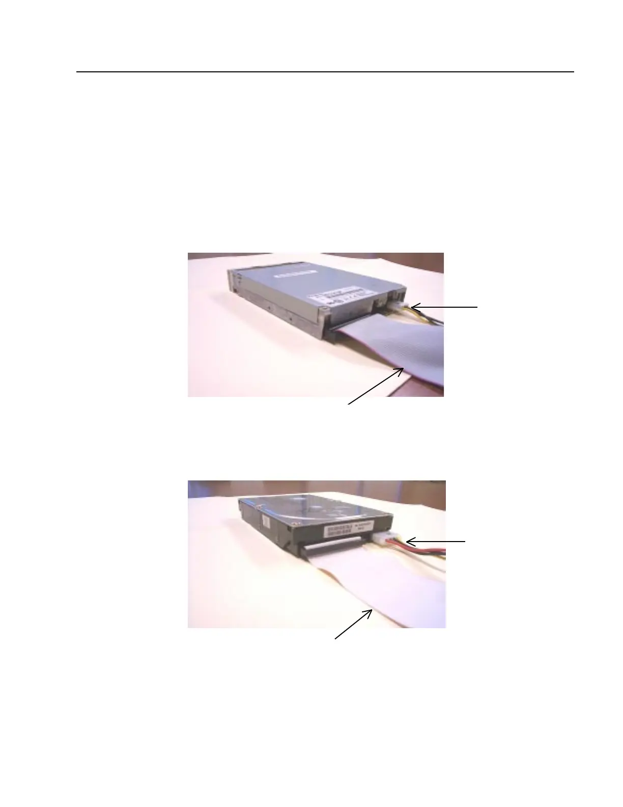 2. Connect the floppy disk ribbon cable and power cable into the device.