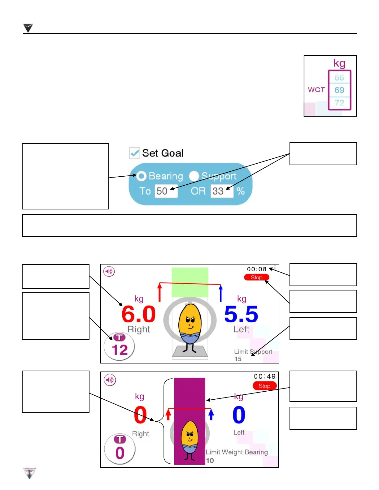 Set user’s weight. Slide scale up or down to adjust scale . Weight defaults at