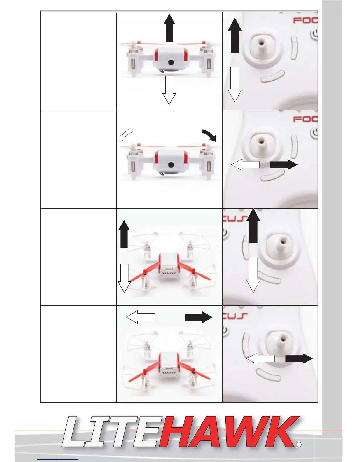LiteHawk Focus - Understanding Flight Controls; Throttle Control Operation; Rotation Control Operation; Pitch Control Operation
