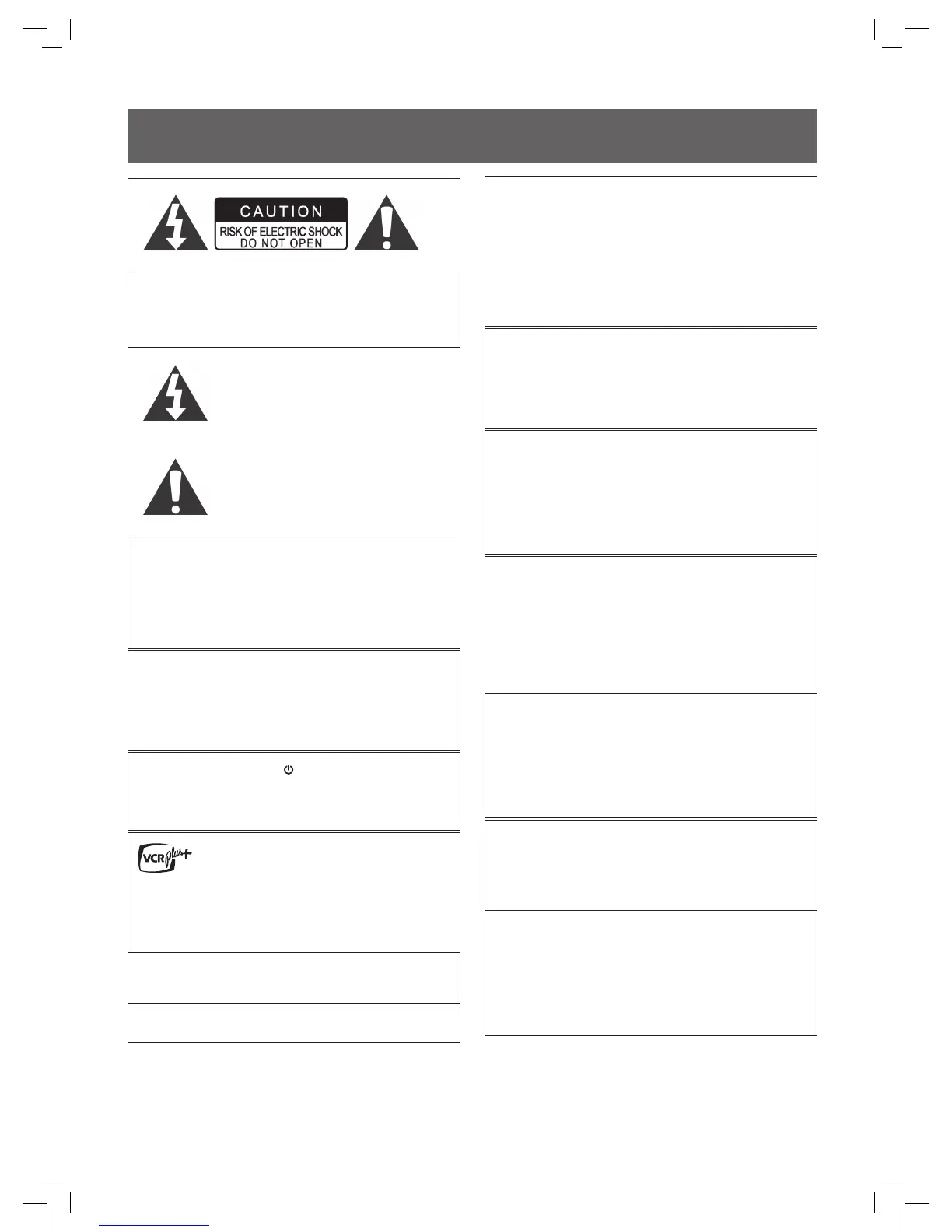 TO REDUCE THE RISK OF ELECTRIC SHOCK, DO NOT REMOVE THE