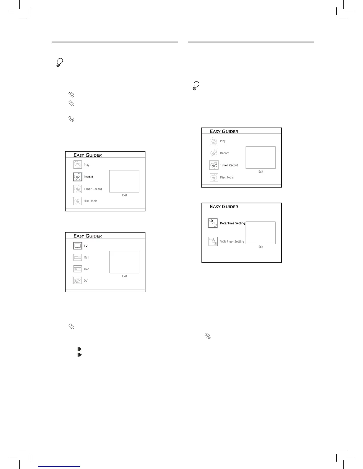 • Refer to ‘Using Easy Guider: Record’.