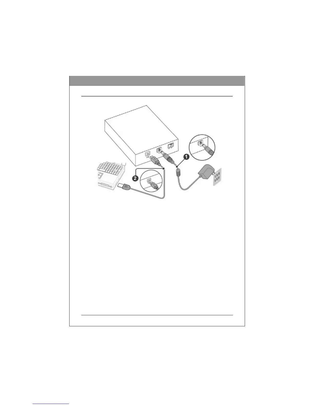 1. Connect the BD drive with the external power cord.