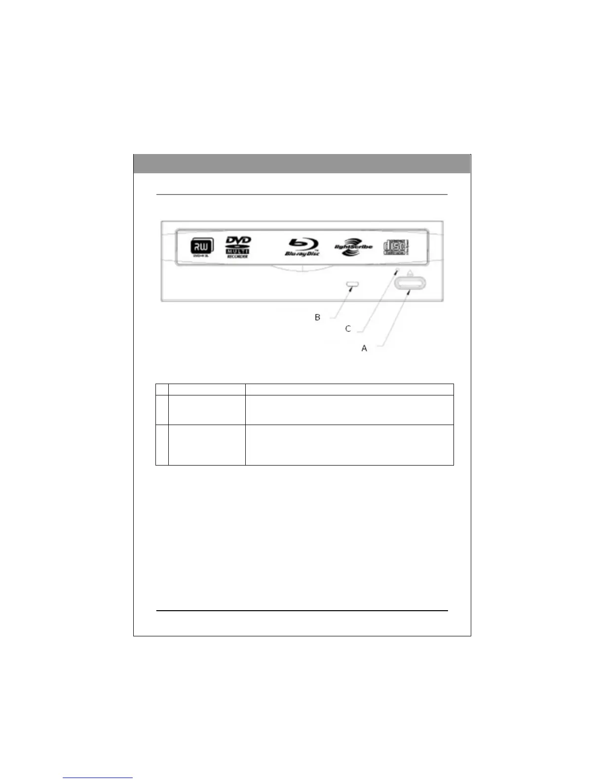 Figure: Front view of BD drive