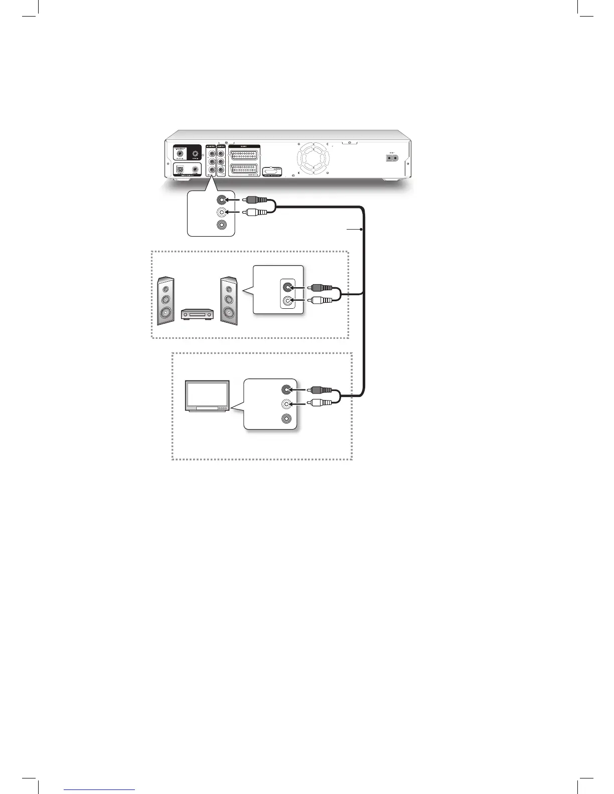 jack on the DVD recorder to the AUDIO IN jack on a stereo amplifi er, a receiver or a TV.