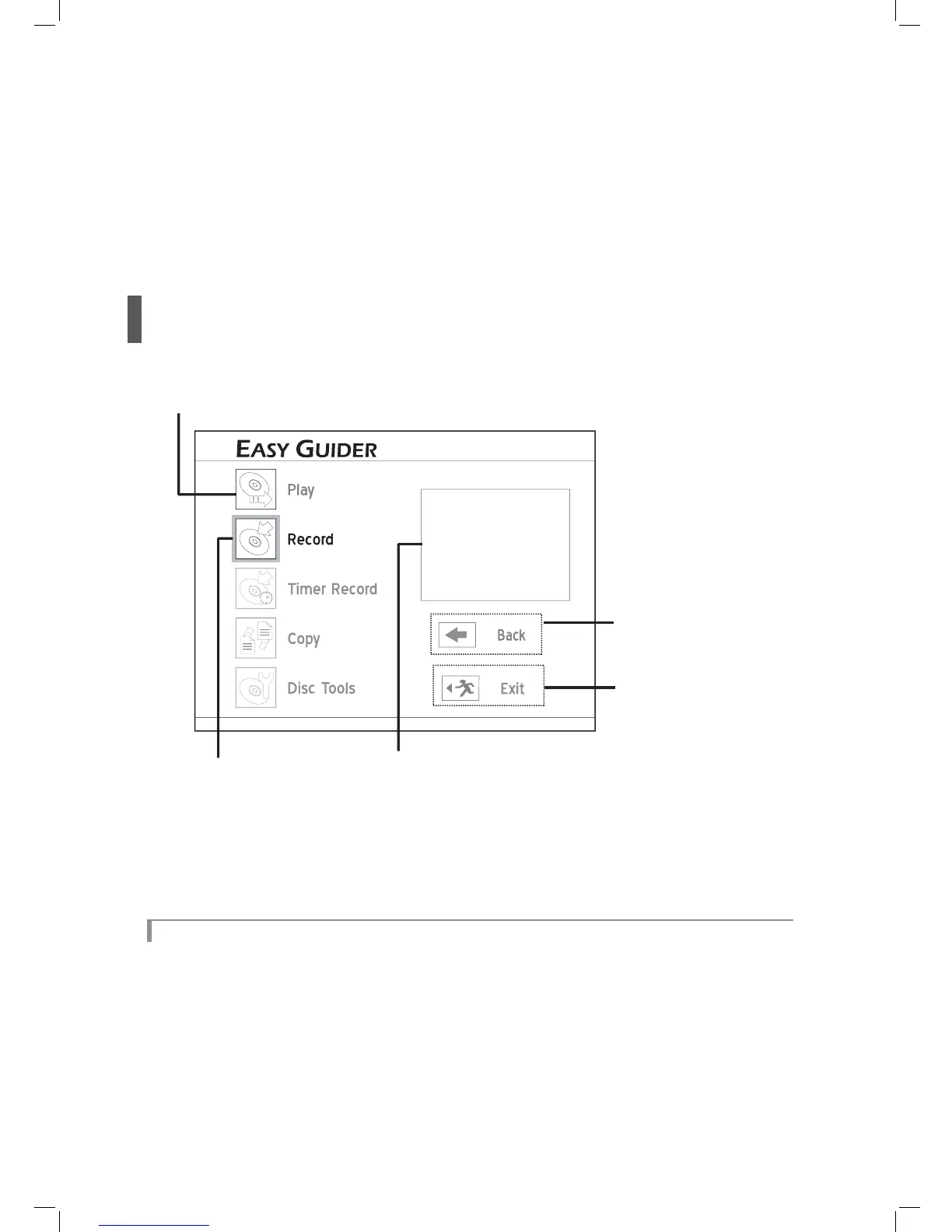 Graphical and intuitive, the ‘Easy Guider’ menu guides you through all the major features available, and helps you