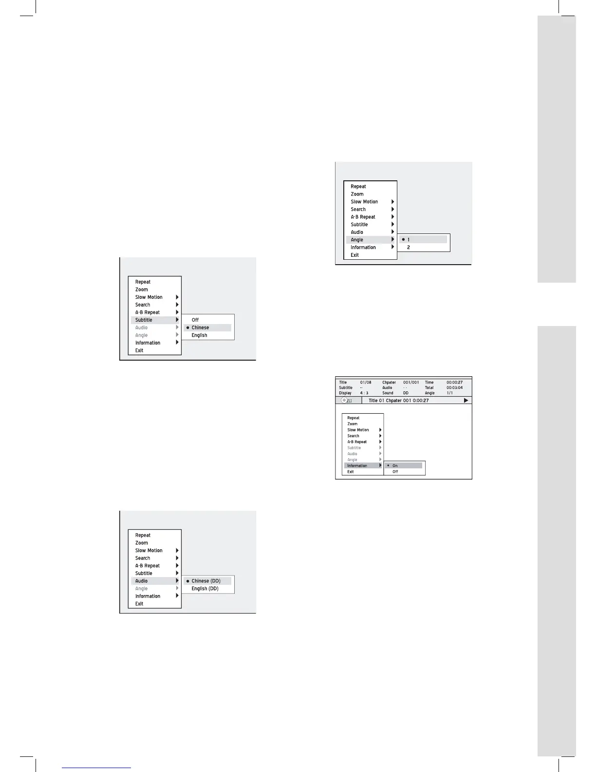 During playback, you can select to display the disc