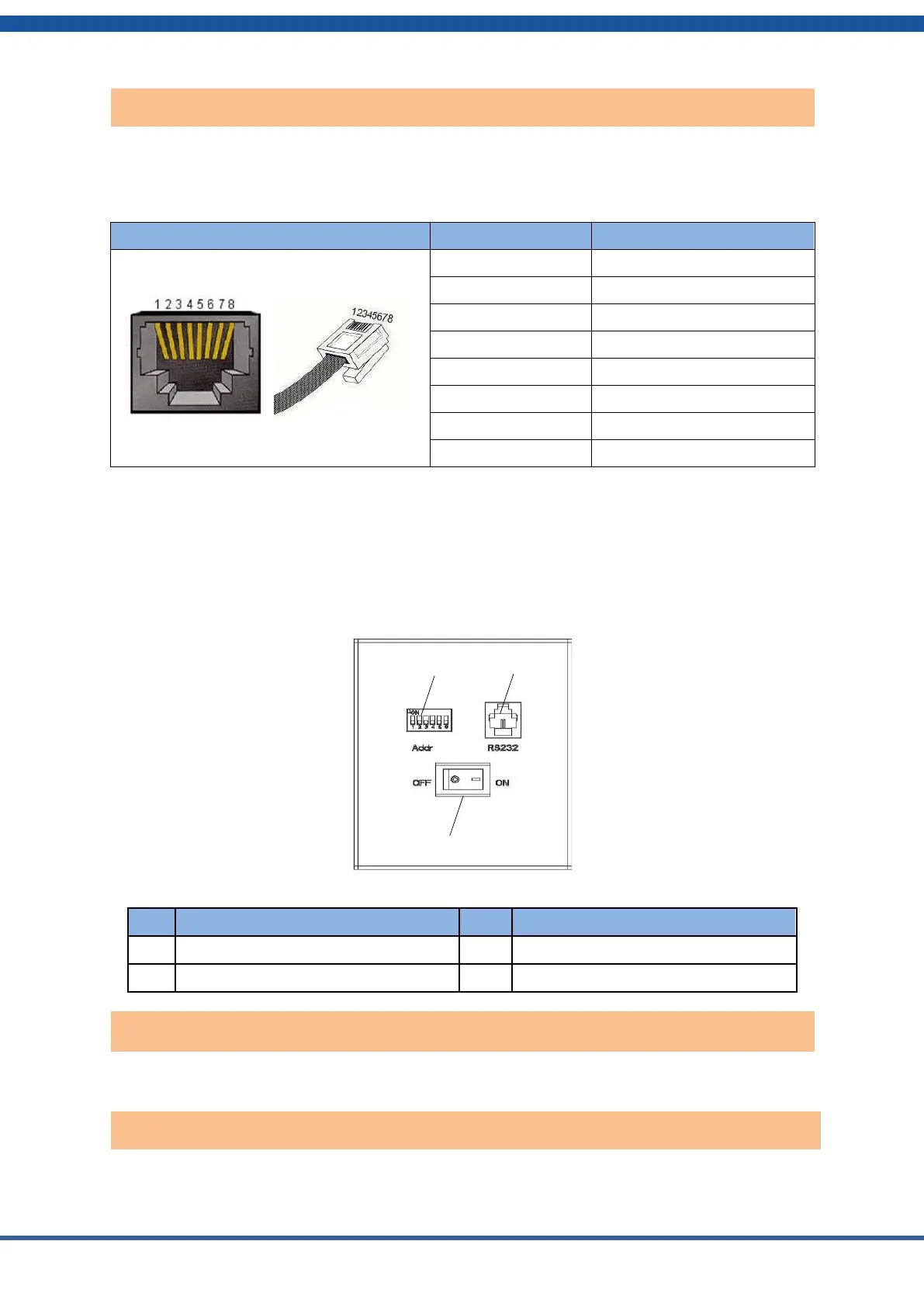 RS232 communication port: (RJ11 port) with a baud rate of 9600 bps for debugging or service.