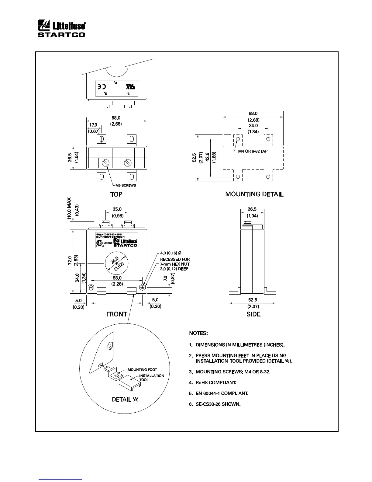 Littelfuse MPS - EFCT-26 and SE-CS30-26 Outline and Mounting Details