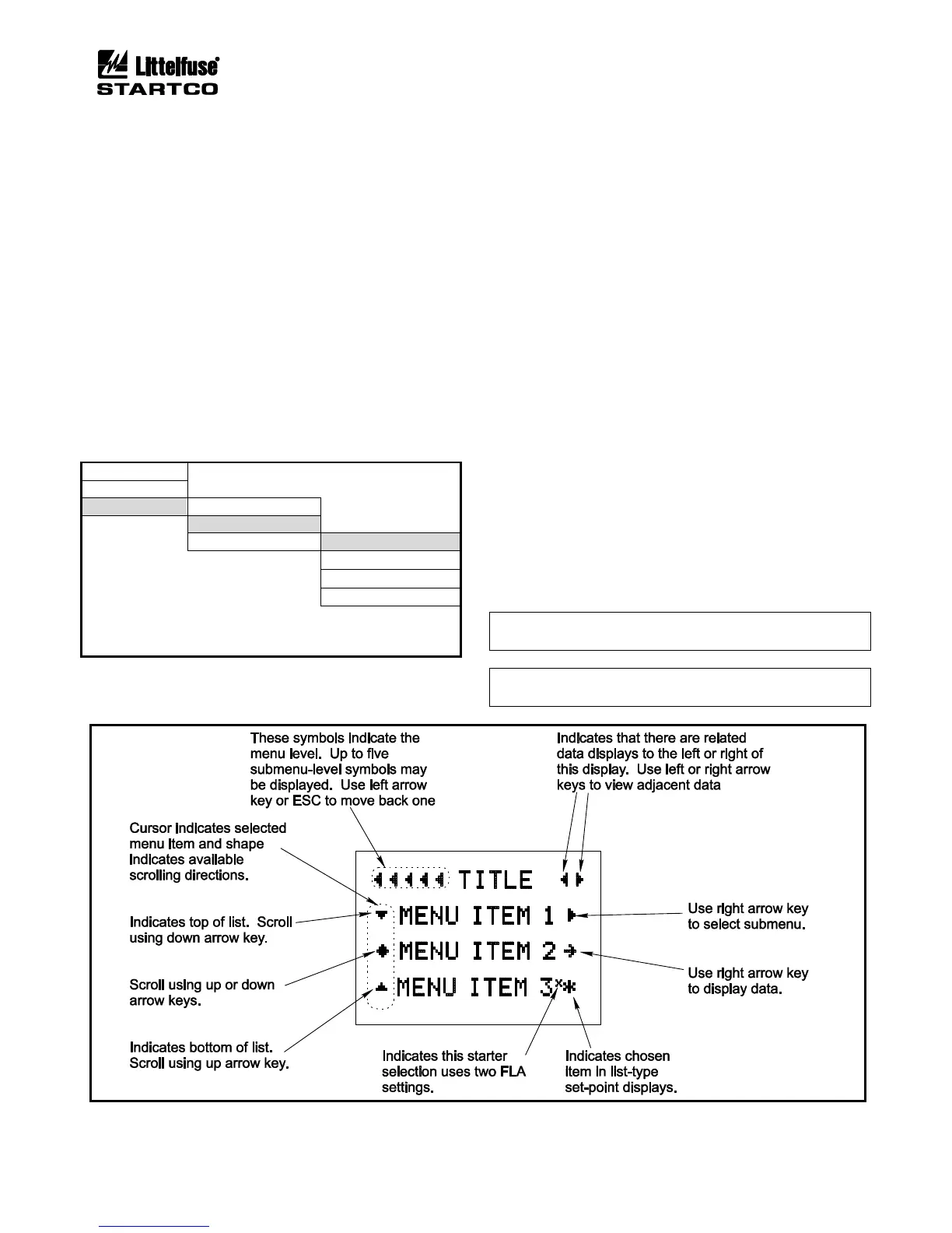 menu system and how these symbols relate to the arrow