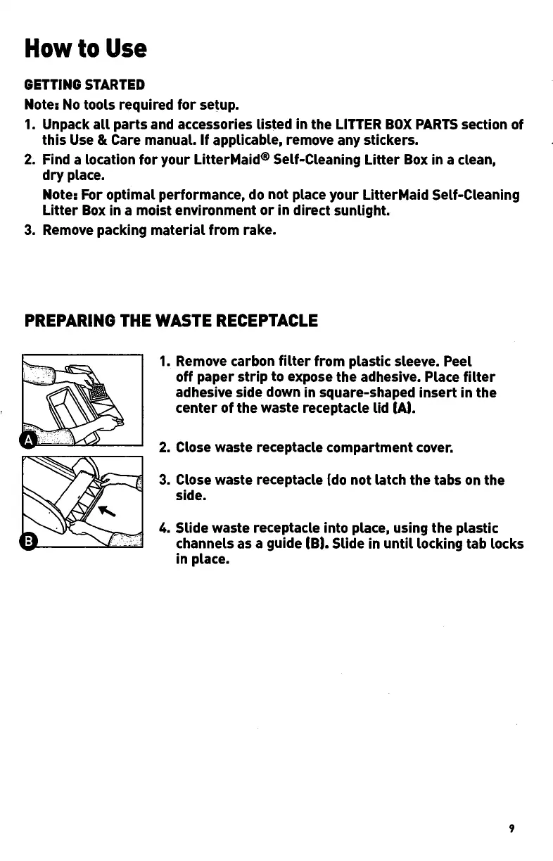LitterMaid LM2680 - How to Use Your Litter Maid Box; Initial Setup and Preparation; Waste Receptacle Setup