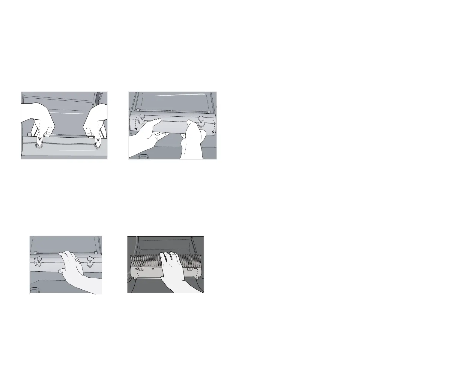• With two thumbs, press the two buttons on the motor housing to release rake