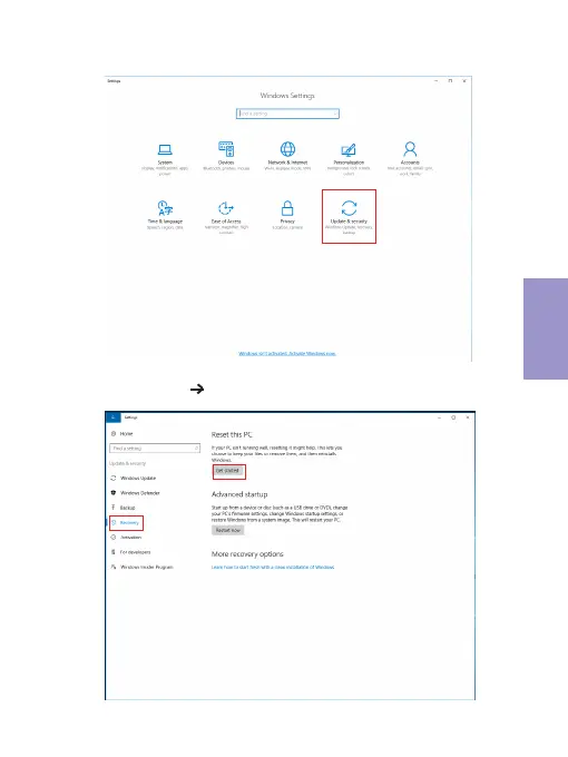 3. Select “Recovery” “Reset this PC – Get started
