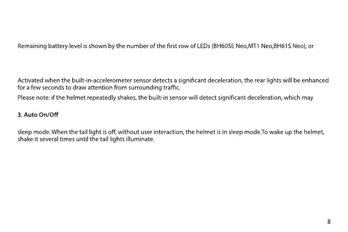 After the helmet powers on and stays stationary for a while, it will automatically begin saving power by going into
