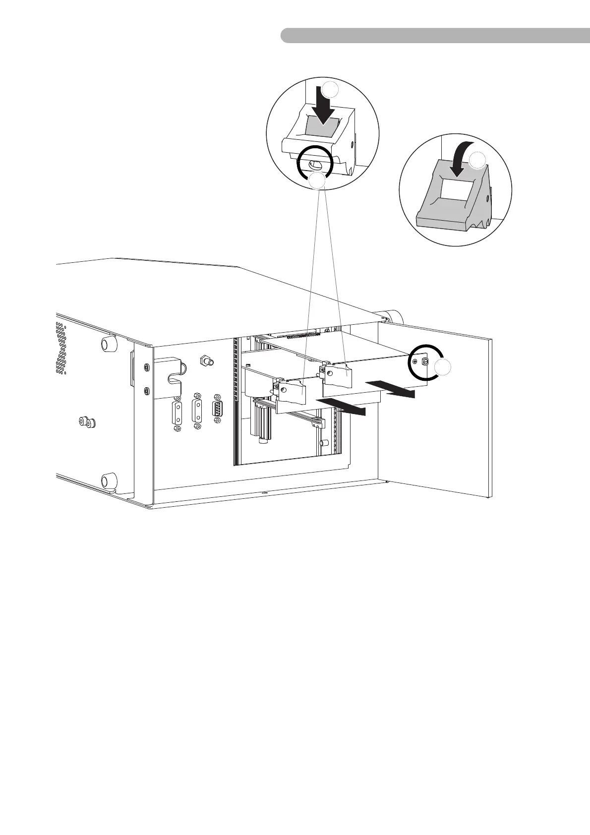 ◗ Unfasten the screws (b) on the eject levers (slotted screwdriver size 2).