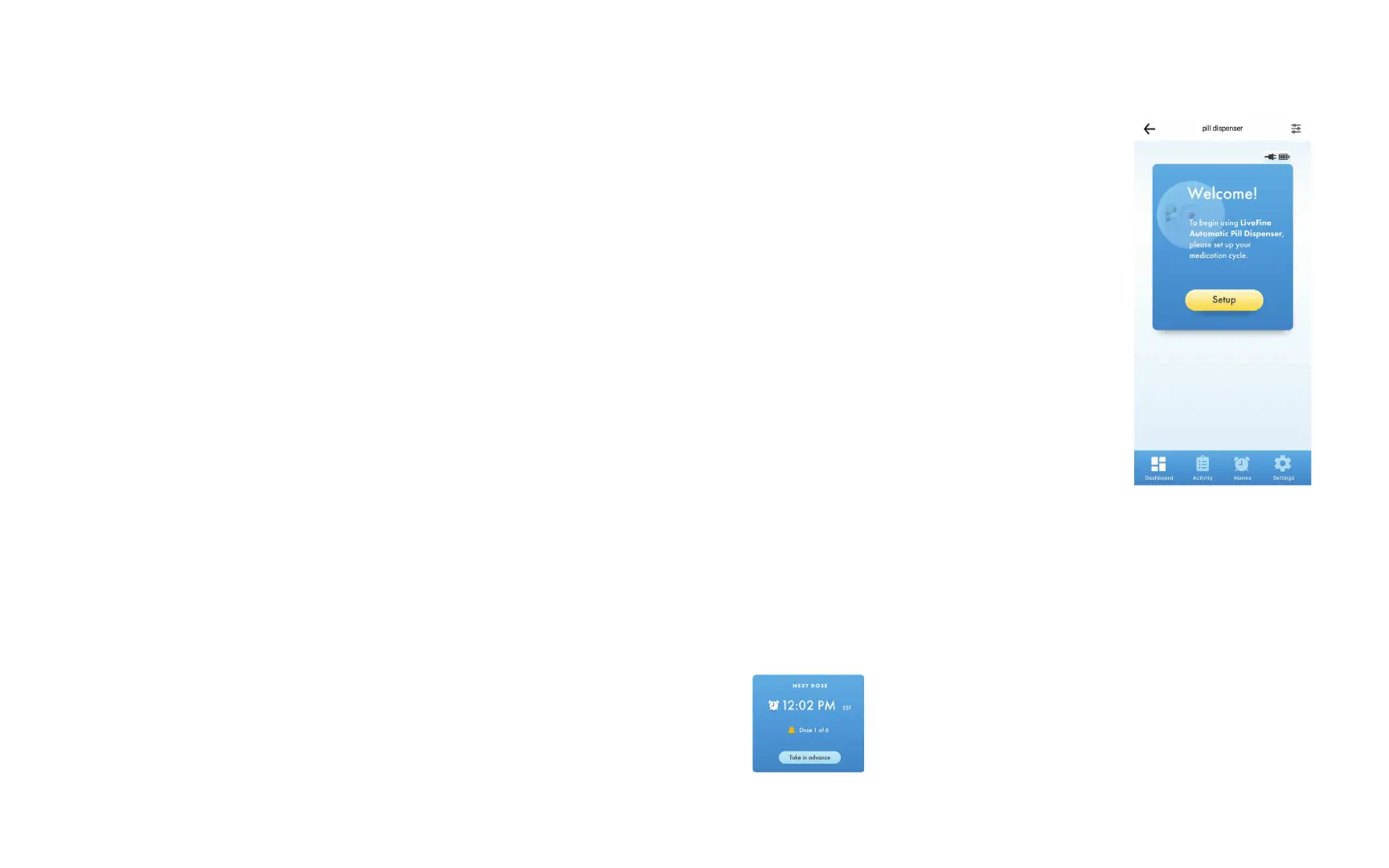 13. Monitor activity or adjust settings for the pill dispenser from the compatible LiveFine