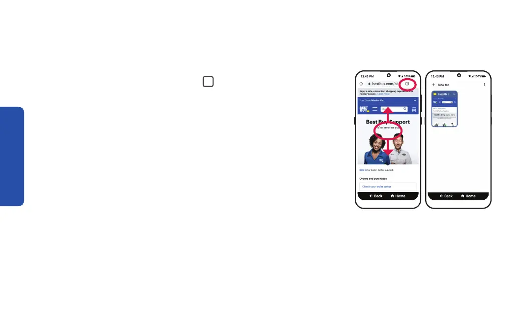 • Go back – TAP BACK to go back to the previous web page.