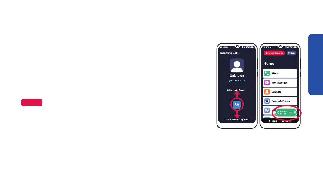 Return to Call button at the bottom of the screen to return.