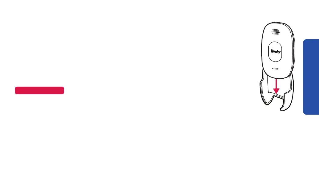 To attach the clip accessory, slide the Lively Mobile2 down into the accessory as