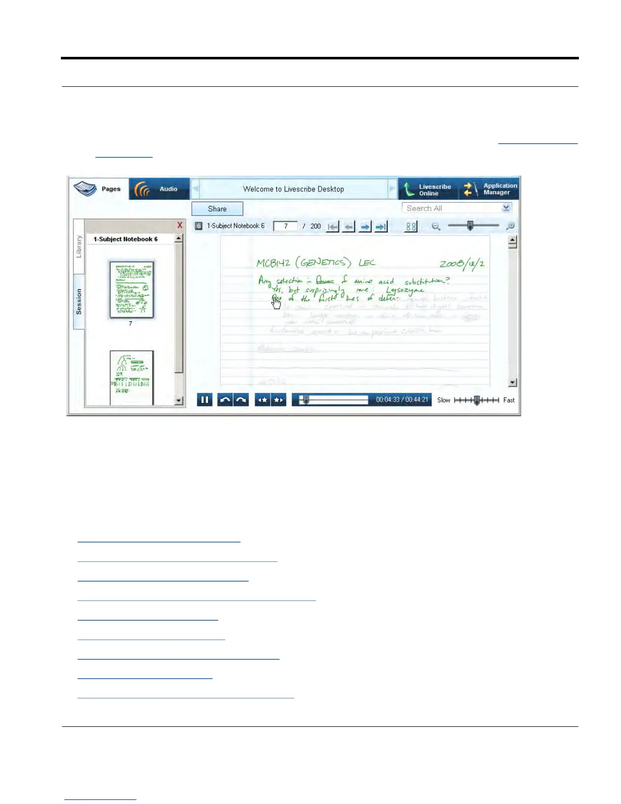 With Livescribe™ Desktop, you can view and work with pages from your notebooks. This topic
