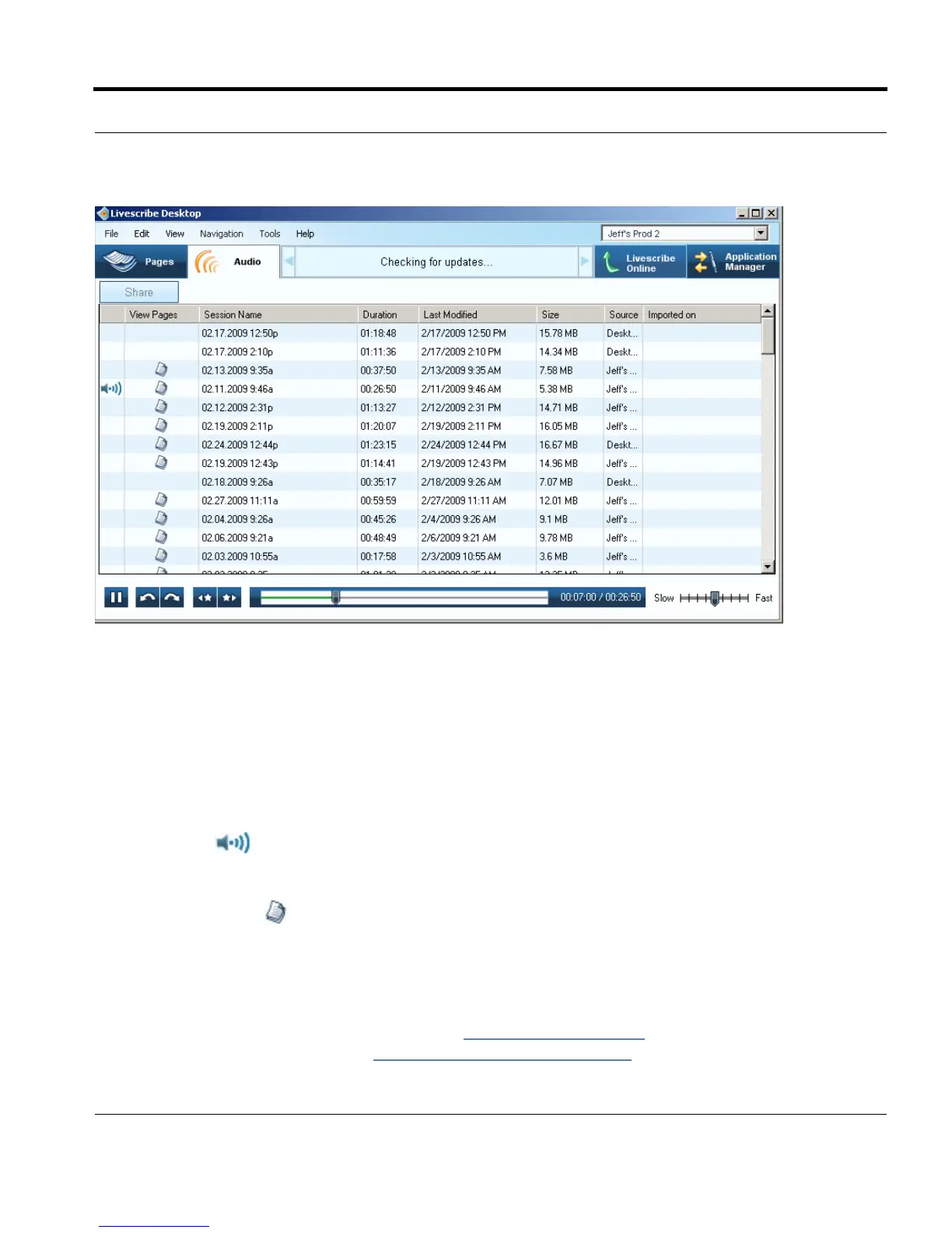 When you view sessions as a list, Livescribe™ Desktop displays the sessions as a series of rows with
