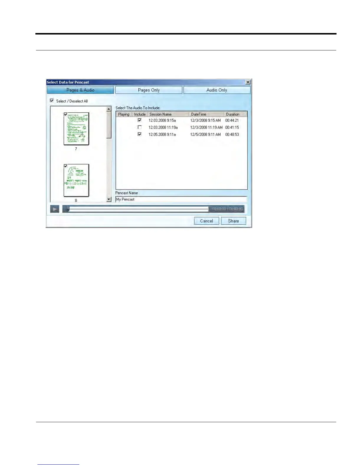 • Pages Only: Share just the pages associated with your selected audio