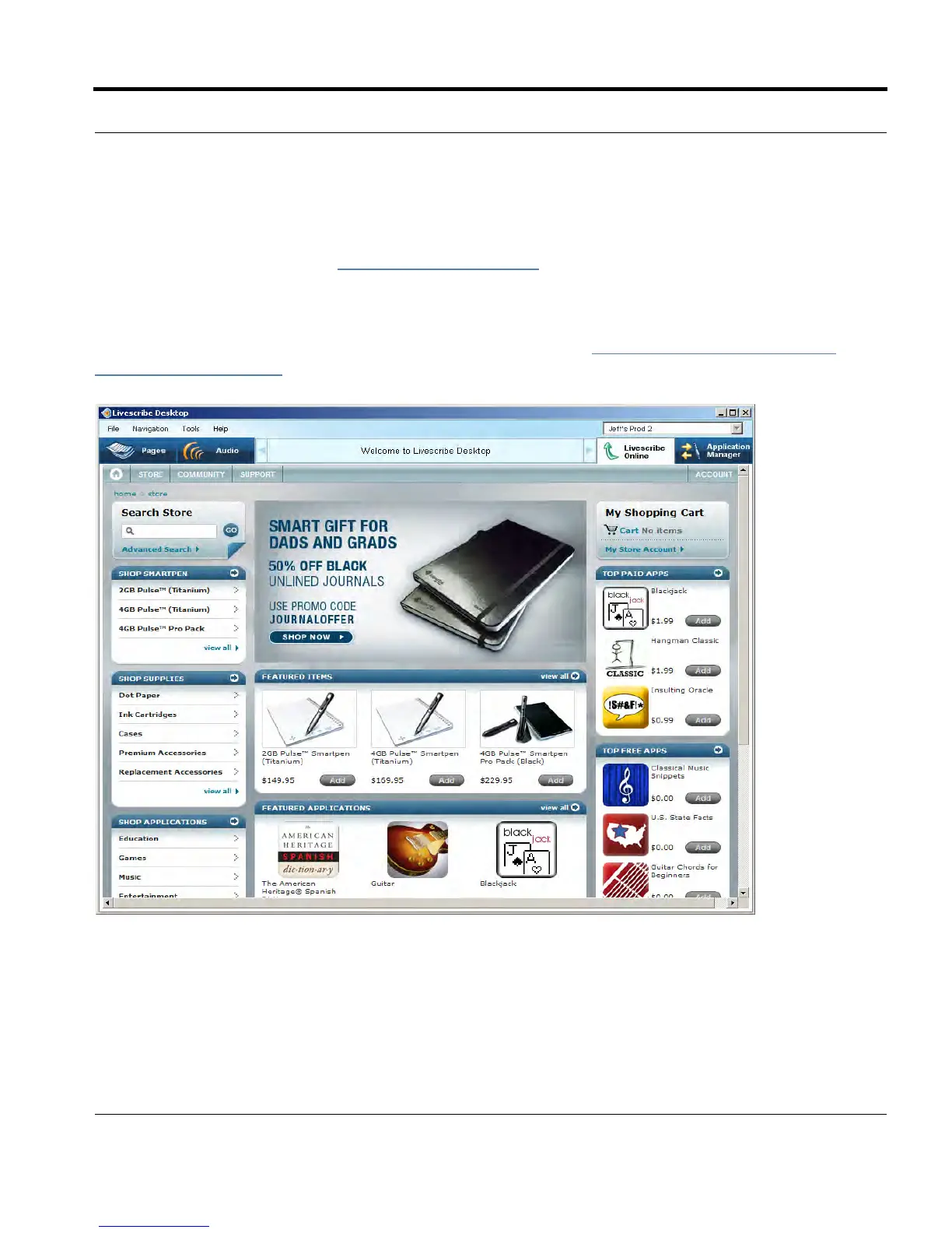 an account if you have not already. You can access the Livescribe Store either from a web browser or